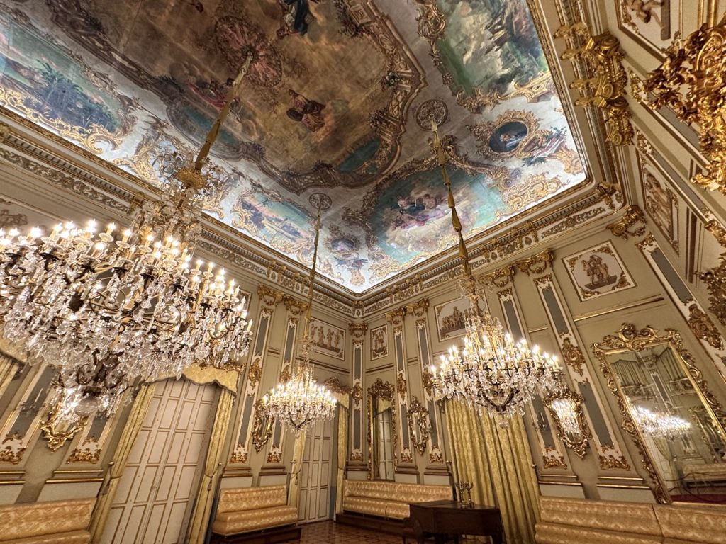 The true jewel of the Casino, however, is the ballroom, designed in the Neo-Baroque and Neo-Rococo styles. Visitors often feel as though they have stepped into a French royal court or imperial Saint Petersburg. The vaulted ceiling is painted in a lavish Baroque manner, depicting artistic disciplines alongside prominent members of the city’s elite of the time.