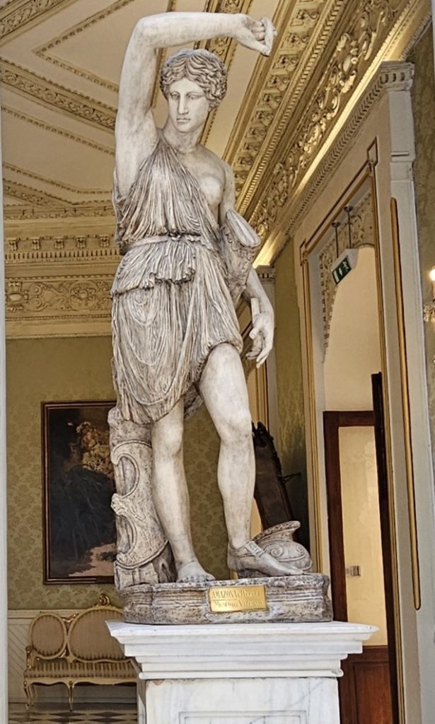 One space within the Casino stands out for its distinctive, almost elevated sense of calm: the Pompeian Courtyard. Covered by a glass vault and designed in a Neoclassical style, it contains several sculptures inspired by antiquity, including two faithful replicas of works by Polykleitos from the fifth century BCE, whose originals are housed in the Vatican Museums. The central position is occupied by a sculpture of Venus by José Planes.